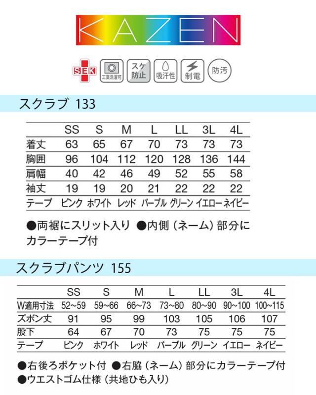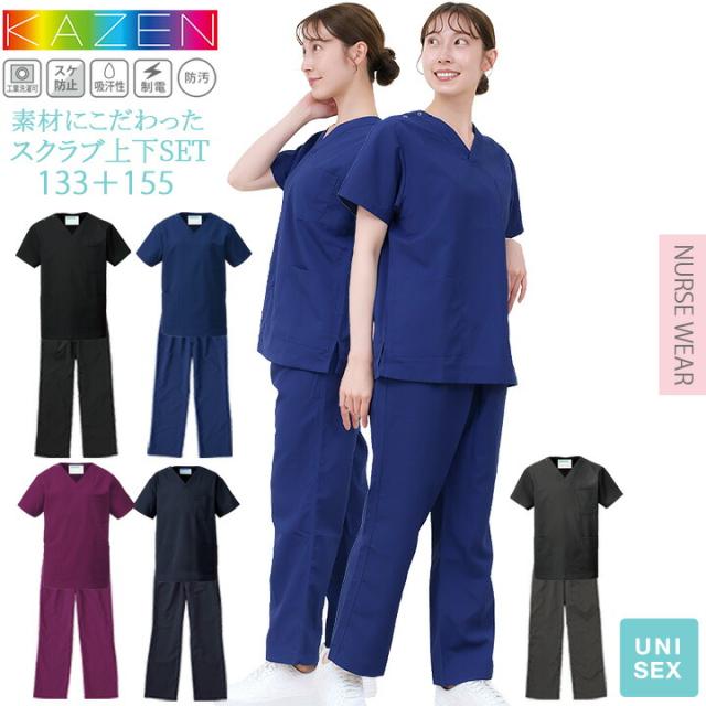 スクラブ 上下セット 医療 人気 カゼン KAZEN 白衣 医療用 133 155 パンツ スラックス レディース メンズ 男女兼用 ユニフォーム 医師 ドクター 看護師 ナース 歯科 動物病院 リハビリ クリニック 人気 ドラマ 採用 コードブルー 術衣 カラフル サンアロー