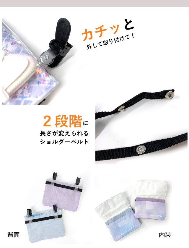 ■イメージ:おしゃれ お洒落 人気 人気 ランキング 可愛い かわいい 使いやすい ショルダーベルト 安全パーツ クリップ 売れ筋 おすすめ 便利 水色 ブルー ライトブルー 黒 ブラック 紫 パープル レインボー グラデ ネコ 猫 ねこ リボン チェック柄 抗菌 防臭 クリア素材 韓国 韓国風 オルチャン 原宿系 ポケットのない服 外付けポケット ショルダーバッグ ポシェット
