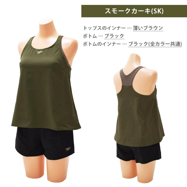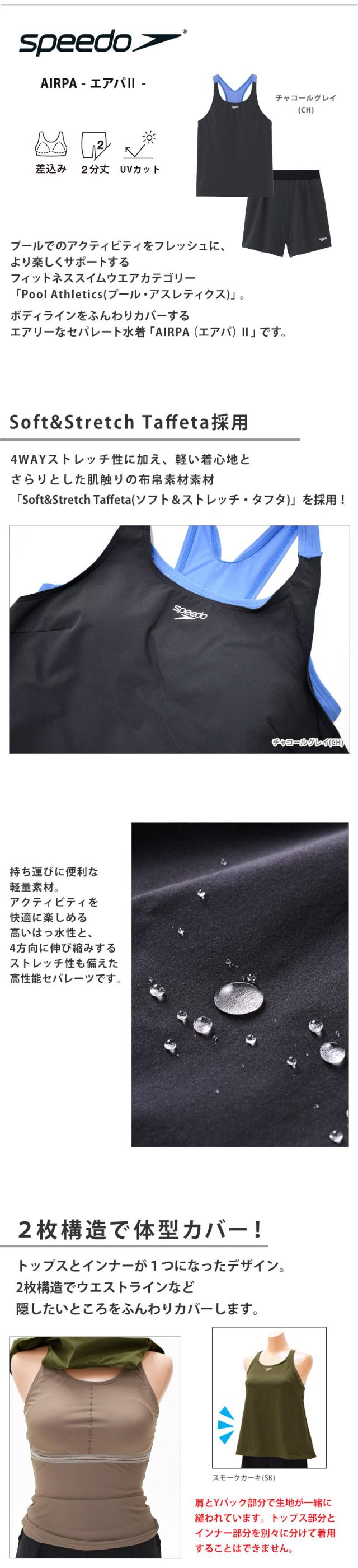 値下げ 送料無料 speedo スピード エアパII レディース 水着 SFW22562 M L O 返品交換不可 フィットネス水着 セパレート 体型カバー ゆったり めくれ防止 ストレッチ 2枚構造 2分丈 スイムウェア 水泳 軽量 パッド付き 撥水