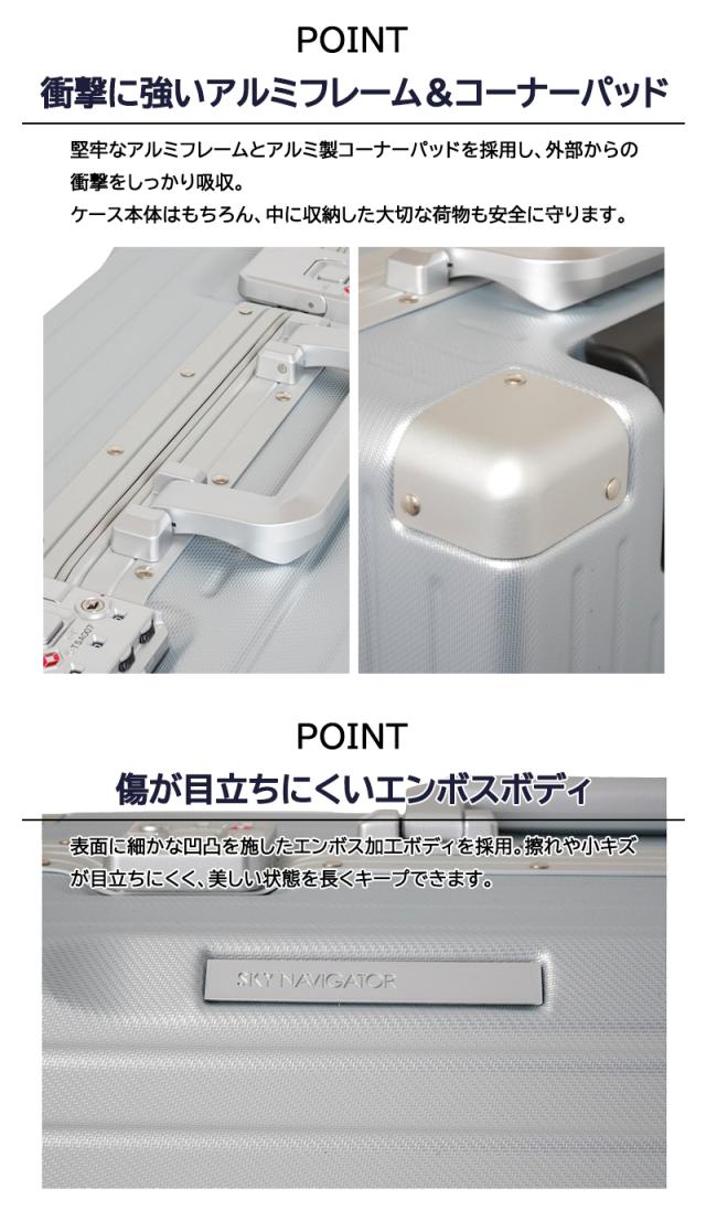 スーツケース スカイナビゲーター SKY NAVIGATOR キャリーケース 受託手荷物対応 87L 7泊 超軽量 静音 フレーム TSAロック HINOMOTO ストッパー 旅行 出張 修学旅行 大型 Lサイズ メンズ レディース