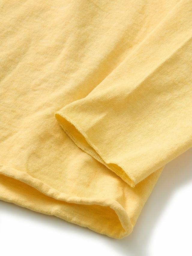 ■ GOOD ON グッドオン 商品詳細 【数量限定商品】 適度にゆとりを持たせたシルエットに、首、袖、裾はカットオフ&ロックステッチ仕様でナチュラルにクルクルと丸まったラフなデザインに仕上げた、ほど良く肩の力の抜けたリラックス感のある表情が何とも言えないウィメンズ用カットソーです。 夏物のショートスリーブで人気を集めた商品のディテールを秋冬仕様のロングスリーブに落とし込んでおり、インナーとしても活用できる一着となっています。 ウィメンズらしいディテールとGood Onならではのしっかりとした生地感、顔料染めの風合い感が絶妙にマッチし、カジュアルながら落ち着いた雰囲気にまとまっています。 ネック〜ショルダーラインの補強テープ、丸胴編みボディーなど、強度や着心地の点でもGood OnのTシャツのクオリティーをしっかり踏襲しており、安心してデイリーに着回していただいけます。 発色が良く上品な仕上がりの反応染めのブラックは、素材本来の柔らかくナチュラルな風合い感を楽しむことができ、シンプルな見た目と着回しやすさが特徴。 ピグメント染め(顔料染め)カラーは着用とお洗濯を繰り返すことで徐々に色褪せしてき、生地の凹凸や縫製箇所のアタリが出て色の濃淡が増していくので、長く愛用するほどに風合い感溢れる独特な表情となっていきます。 Fabric made in USA Assembled in Japan |