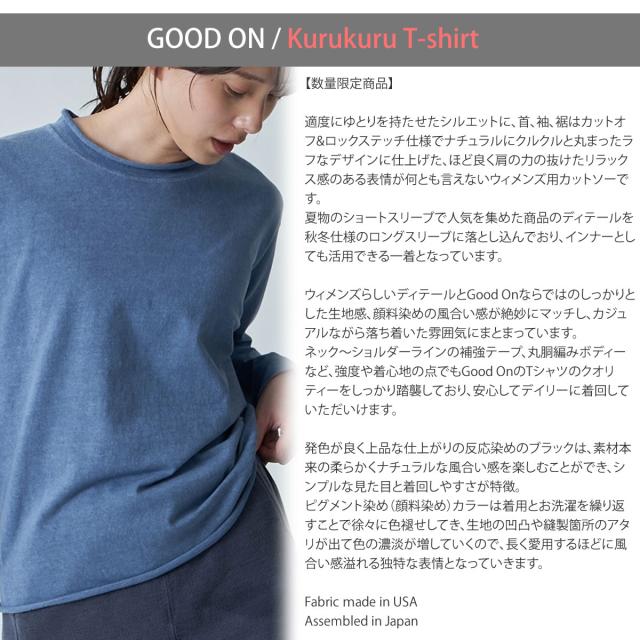 【 WOMENS 】クルクルTシャツ GOOD ON グッドオン レディース ロングスリーブ 長袖 Tシャツ カットソー ( GOLT2408 ) クルーネック 丸首 ロングテール仕様 レディース ウィメンズ カジュアル アメカジ ベーシック シンプル おしゃれ アーベン 普段使い