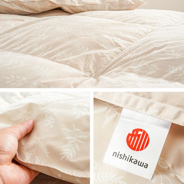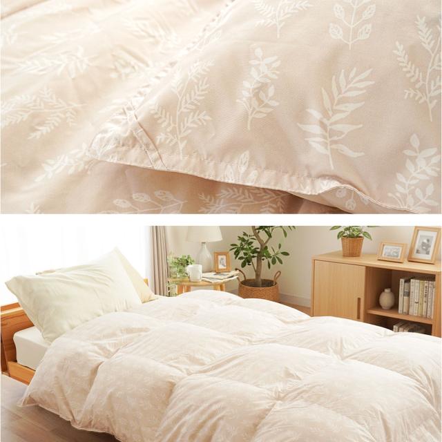 ・「ecoダウン」で地球にちょっとやさしい選択を ダウン(羽毛)の供給量が減少している現在、限りある資源を守るために羽毛ふとんをリサイクル。不要な羽毛をきれいによみがえらせて再生羽毛布ふとんを製造。企業・地域・私たち一人ひとりの協力で、SDGsにもつながる環境にやさしい取り組みです。 ・高気密住宅にお住まいの方におすすめマンションや新築一戸建てなどの高気密住宅では、お部屋の湿度が高く、従来の羽毛布団では暑すぎるという声も。そんな方には、詰め物量を少し減らした羽毛布団がおすすめです。 ・はじめての羽毛布団にもおすすめ!再生羽毛のecoダウンを使用ふっくらあたたかいダウン率90%。芯がなくふわふわのダウン(羽毛)で快適な寝心地。新毛よりも洗浄の回数が多いため、清潔で臭いの少ないダウンに仕上がっています。 ・暖かさを逃がさない立体キルト羽毛の持つふくらむ力を最大限に活かすため、小部屋を立体的に作ったキルト構造を採用。暖かい空気をしっかり閉じ込めて、朝まで快適な眠りをサポートします。 ・再生羽毛でも安心!より美しく、国内洗浄業界水準の2倍、洗浄度1000mmの高水準で仕上げた清潔な羽毛を使用。汚れや脂分をしっかり落とし、快適でにおいの少ない羽毛本来のふくらみを実現します。 ・創業450年以上の信頼。安心の高品質、西川製品西川の厳しい基準のもと、羽毛布団から取り出したダウンをリサイクル・洗浄して使用。長年の信頼と実績に支えられた高品質なものづくりで、安心して使える商品です。 ・当社限定デザイン!軽くて快適な綿混生地植物をモチーフにした北欧調のオーガニックなオリジナルデザイン。ポリエステル繊維にコットンを配合して吸湿性をプラス。素朴でかわいい北欧模様が魅力です。 |