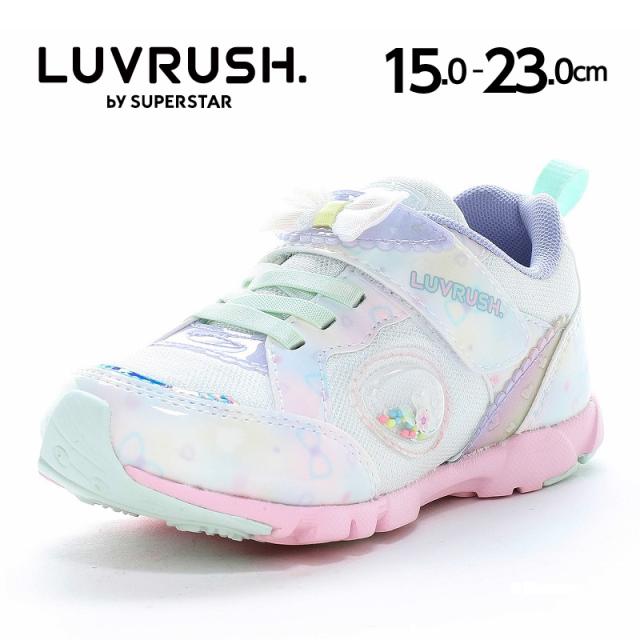 『もっと可愛く!もっと速く!女の子のスポーツシーンを足元から応援!』をコンセプトにガールズ向けに誕生した「ラブラッシュ バイ スーパースター」のキッズシューズです。「速く走る」を体現するために搭載されたパワーバネが走りをアシストします。重さは17.0cmで片足約100gです。【カウンターボックス】子どもの柔らかくゆがみやすい足を箱型構造でしっかり支えます。【パワーバネ】ムーンスター独自開発の特殊なゴムを靴底に搭載し、地面を踏みこむときにパワーを蓄積し、蹴り出すと同時に一気にパワーを推進力に。【Ag+抗菌防臭】銀イオンの抗菌作用でにおいのもととなる菌の増殖を抑制し、防臭効果を発揮。天然由来成分で安全です。【洗えるインソール】インソールは取り出して洗えるのでいつも清潔に保てます。【耐摩耗ラバー】靴底にはすり減りが少なく、高い耐久性を発揮するラバーを採用【軽量設計】軽くなるよう工夫を施しました。優しいパステルトーンのキュートなモヤ柄がコーデのアクセントに、サイドのイースターエッグの中に春らしいモチーフを詰め込みました。リボンやフリルカットなど、女の子の大好きなエッセンスを凝縮しました。