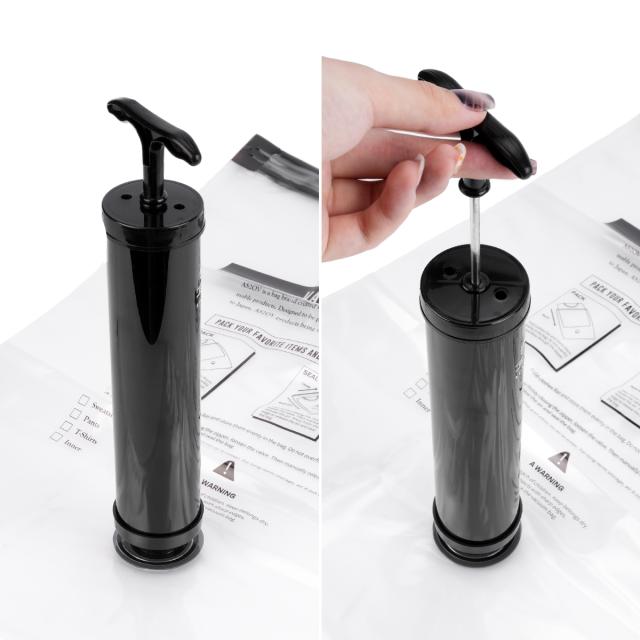 | AS2OV (アッソブ) VACUUM STORAGE BAGS 圧縮袋 旅行や出張時のパッキングに役立つ圧縮袋(5枚) 付属のポンプでしっかり圧縮でき、コンパクトに収納頂けます。 ポンプ無しでも、中に衣類を入れ、丸めることで簡単に圧縮も可能です。 セット内容:袋5、ポンプ1 |
