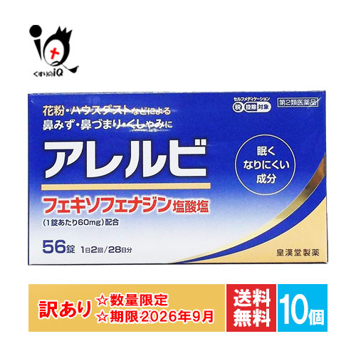 訳アリ 期限切迫【第2類医薬品】★アレルビ 56錠×10個セット【皇漢堂製薬】【使用期限2026年9月】鼻みず・鼻づまり・くしゃみに 花粉やハウスダストなどによるアレルギー性鼻炎 アレグラと同じフェキソフェナジン塩酸塩配合