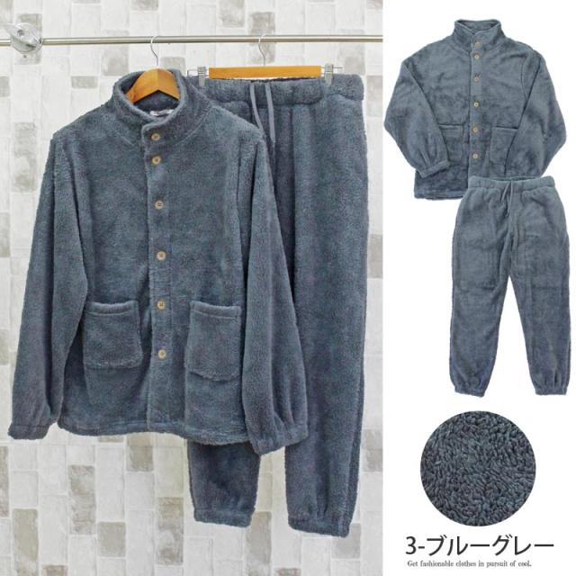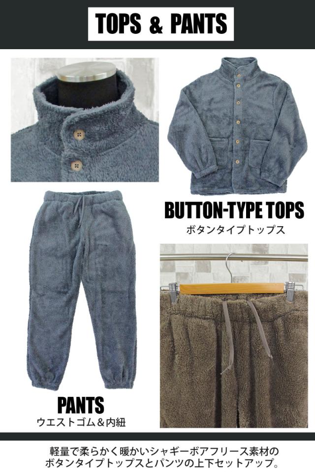 新作 送料無料 ルームウェア メンズ パジャマ 上下セットアップ 部屋着 シャギーボアフリース もこもこ ボタントップス イージーパンツ 秋冬 寝巻き 暖かい あったかい おしゃれ