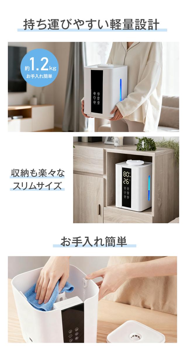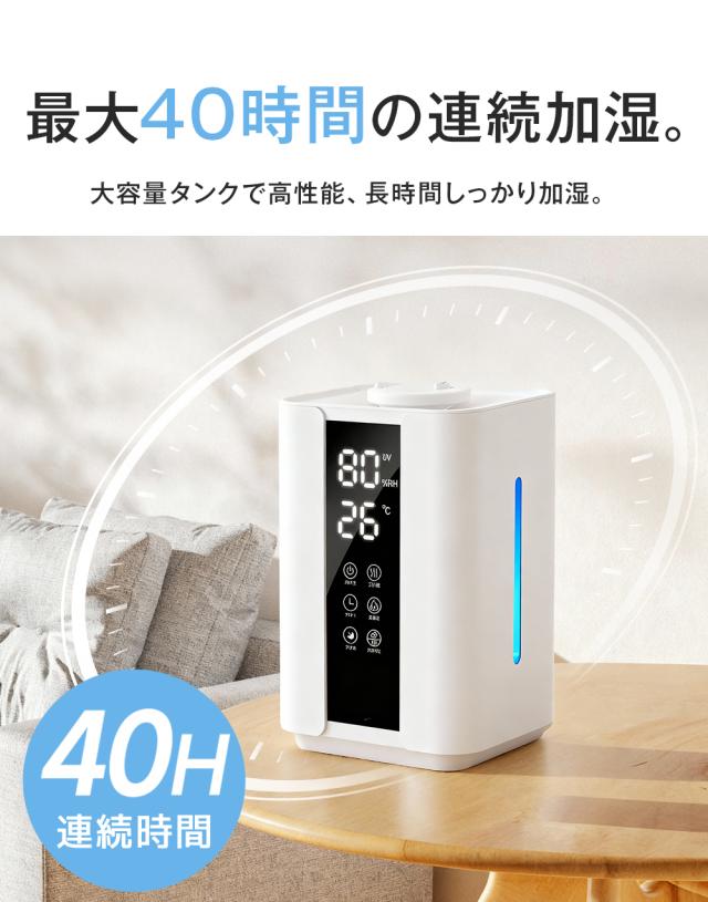 大容量6Lタンクと上部給水機能により、手間いらずで長時間の使用が可能です。