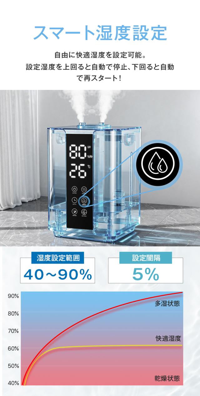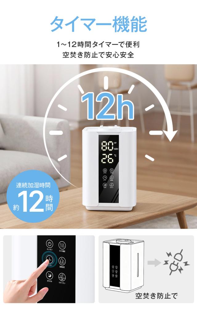 【本製品は2025年最新型のハイブリッド加湿器で、4重除菌機能を備えた卓上加湿器です。