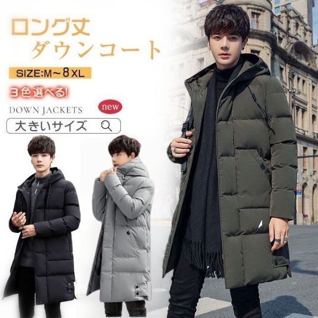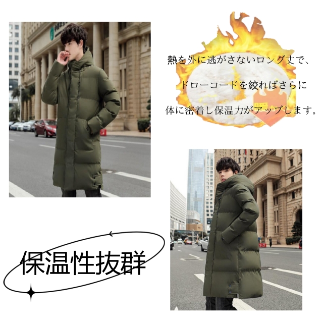 ダウンコート メンズ ロング丈 秋冬 中綿コート 中綿ジャケット ダウンジャケット アウター コート ジャケット フード付き ゆったり 暖かい 厚手 着心地いい 防寒 あったか 新品 冬服 大きいサイズ ファッション 通勤 通学