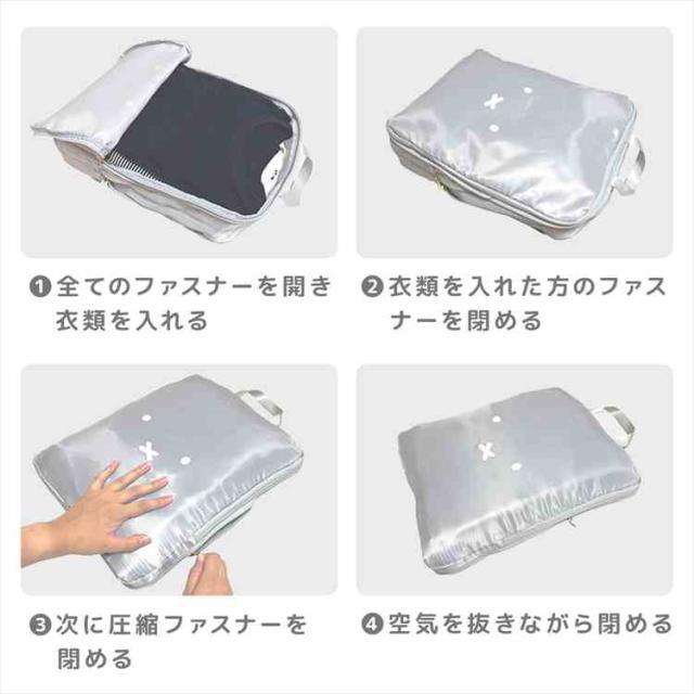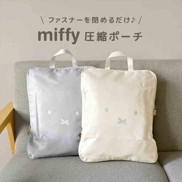 圧縮ポーチ ミッフィー miffy トラベルポーチ キャラクター フェイスシリーズ EB488 収納ポーチ 圧縮袋 衣類 おしゃれ かわいい 旅行 出張 簡単 便利グッズ 圧縮バッグ トラベルバッグ 収納袋 うさぎ パッキング バッグインバッグ シンプル レディース アイボリー グレー