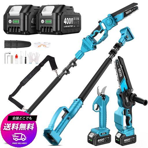 【2025年新型】SEESII たかえだ 電動チェーンソー 電動バサミ 8インチブラシレス高枝チェーンソー 充電式剪定ばさみ 1台4役 4.0AH大容量バッテリー2個 強力 電動のこぎり 軽量 コードレス オ…