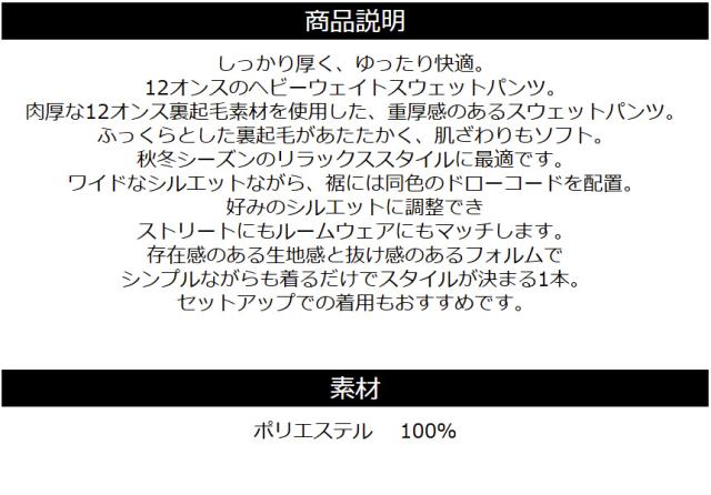 スウェットパンツ メンズ 12オンス ヘビーウェイト 裏起毛 スエット ワイドパンツ 厚手 あったか ストリート 部屋着 カジュアル 秋 冬 【F6-1500】 送料無料