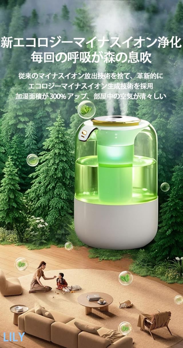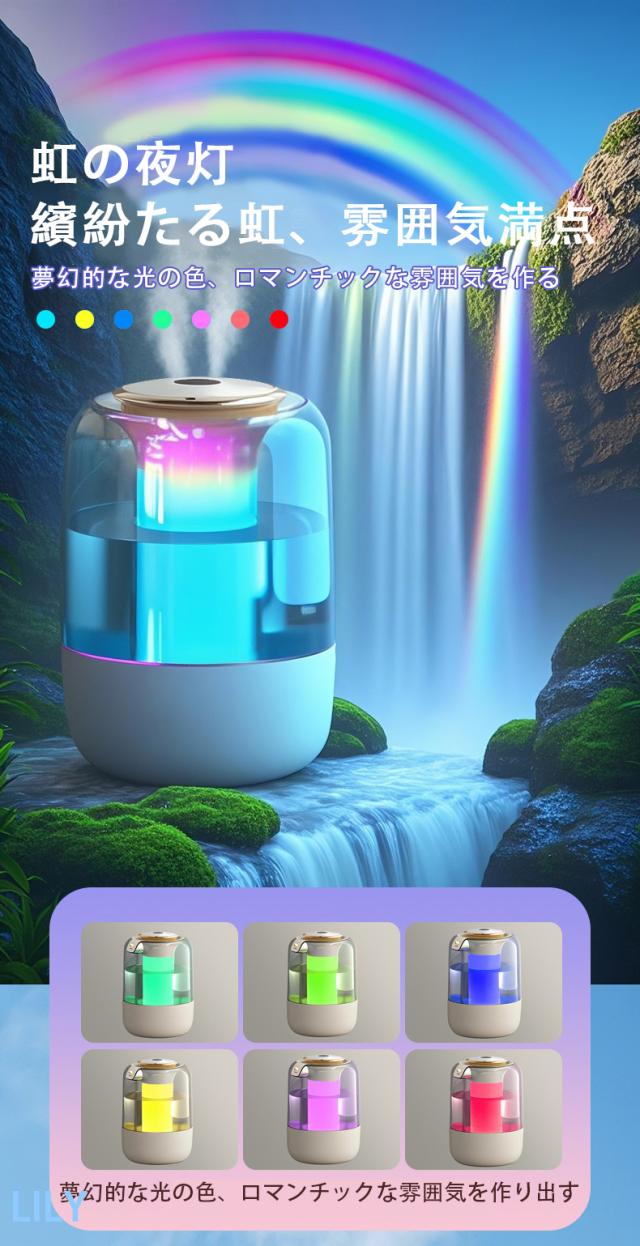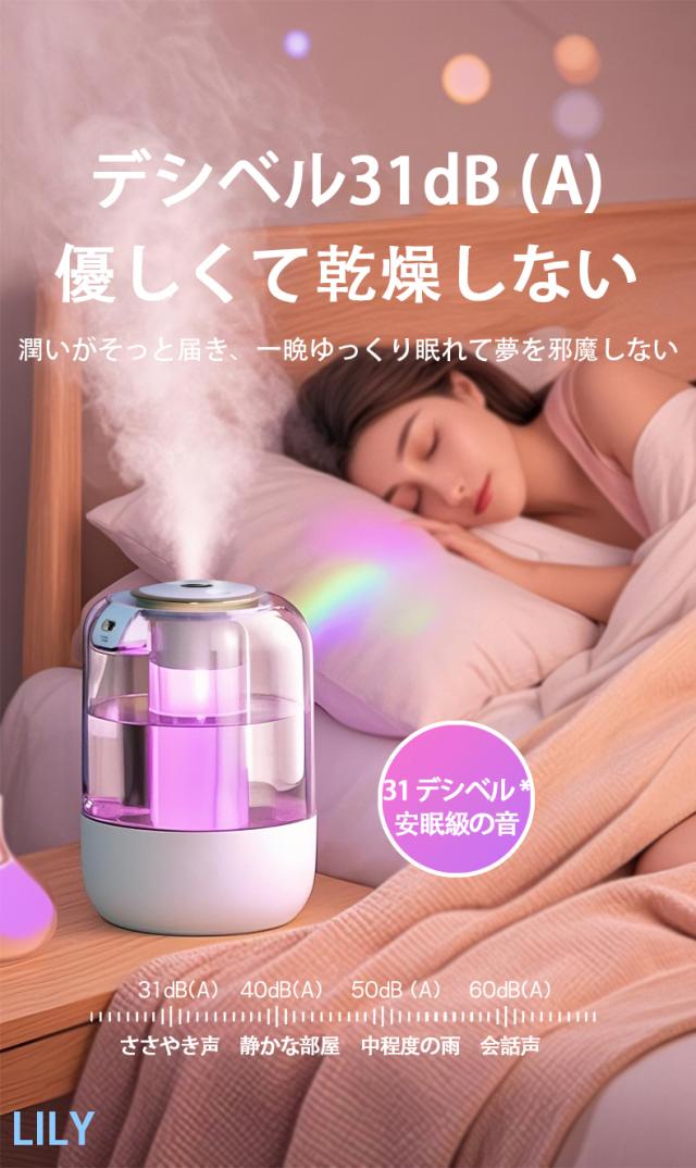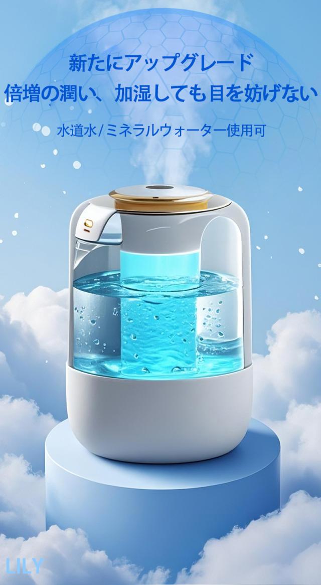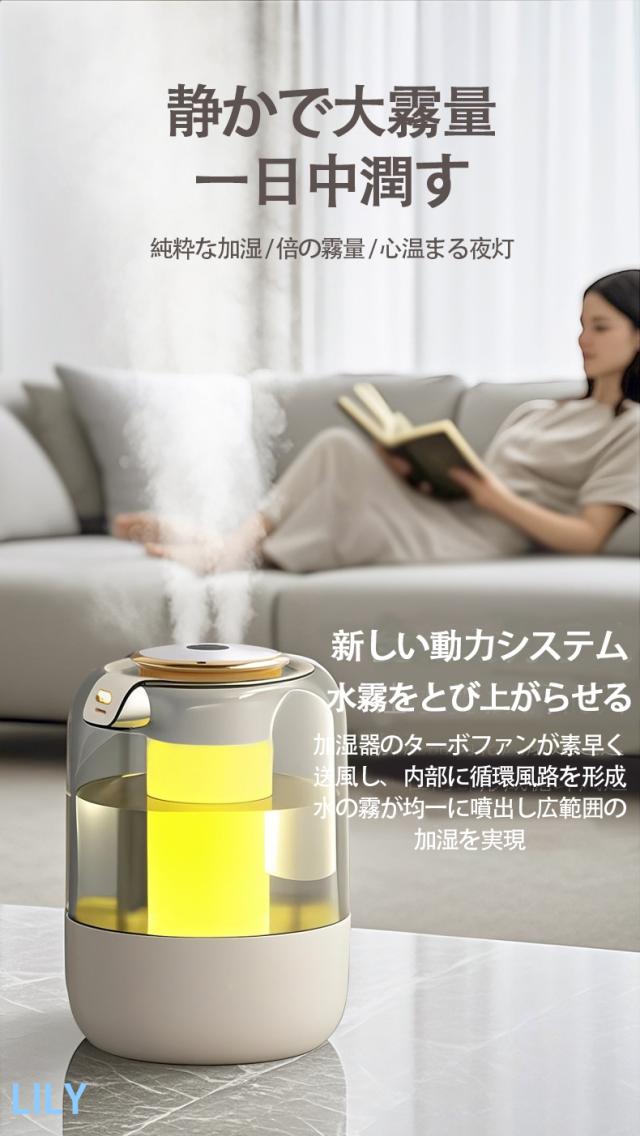 - 2Lの大容量タンクを備え、上から給水が可能な便利な加湿器です。就寝中に使う時間が多いと思う。とても良いと思う。
