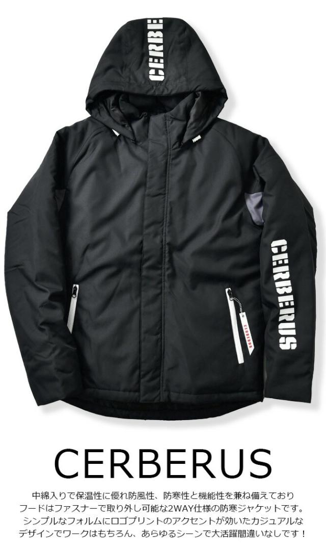 CERBERUS(ケルベロス)のフード脱着式防寒ジャケットです。