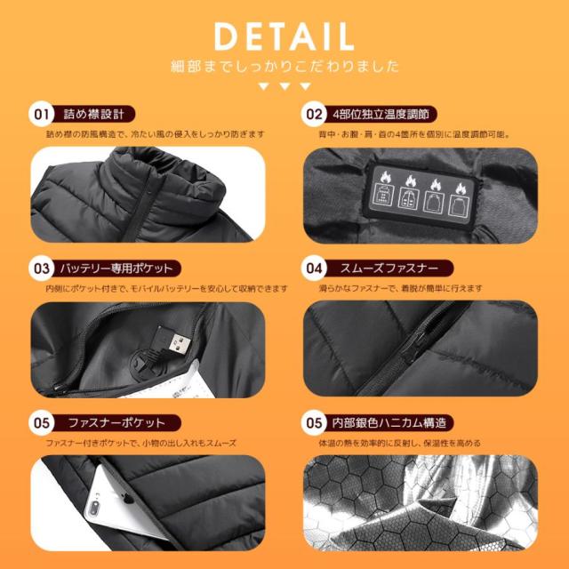 電熱ベスト 9 17 23 エリア 発熱 ヒーターベスト 電熱ジャケット ヒーターベスト インナーベスト メンズ レディース USB 3段階 アウトドア 水洗い モバイルバッテリー付き
