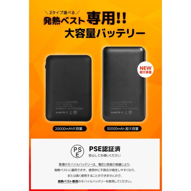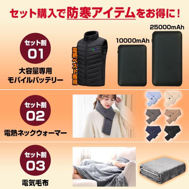 「電熱ベスト単品」と「モバイルバッテリー付セット」から選択可能。