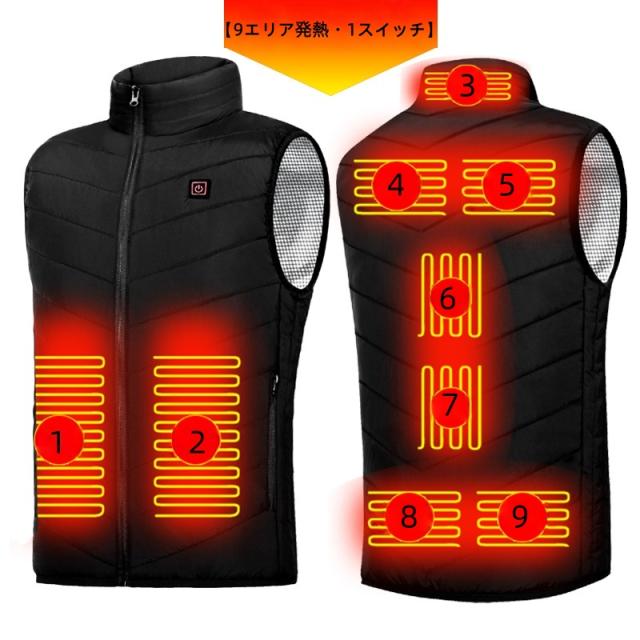 電熱ベスト 9 17 23 エリア 発熱 ヒーターベスト メンズ レディース USB 3段階 アウトドア 水洗い モバイルバッテリー付き