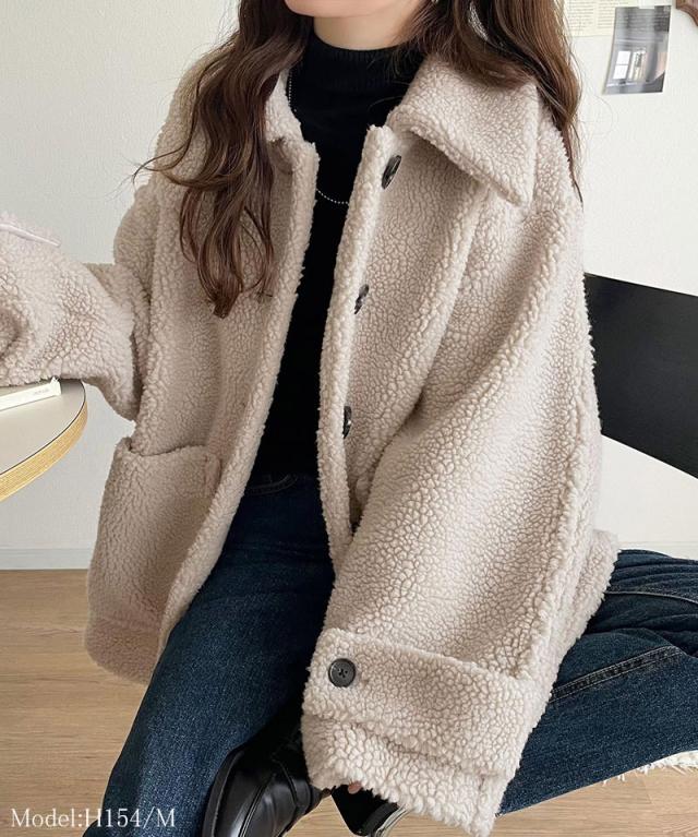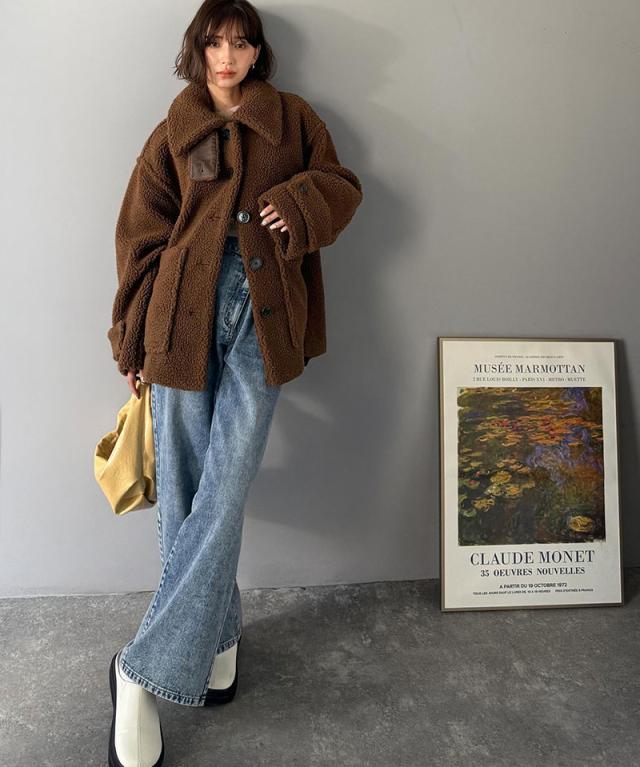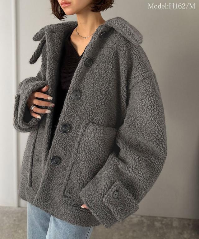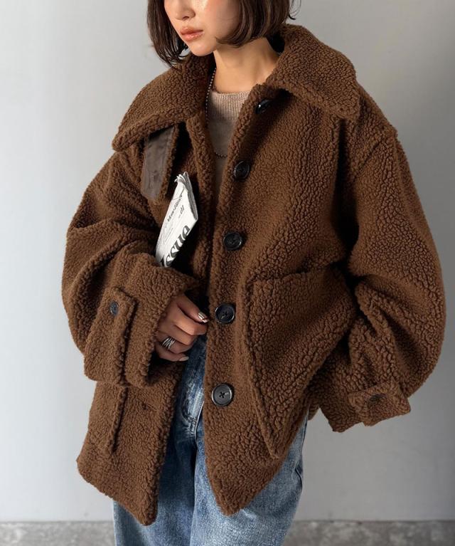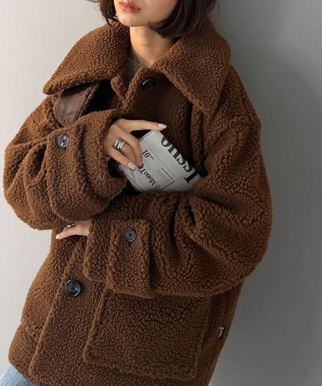 クラシカルエルフ冬新作 java ジャバコラボ ブルゾン レディース 大きいサイズ アウター ボア ショートブルゾン 大きめポケット ゆったりシルエット 大粒ボア 保温性 実用性 ベーシック カジュアル きれいめ デイリー ガーリー 大きいサイズ 2025aw jv1265010