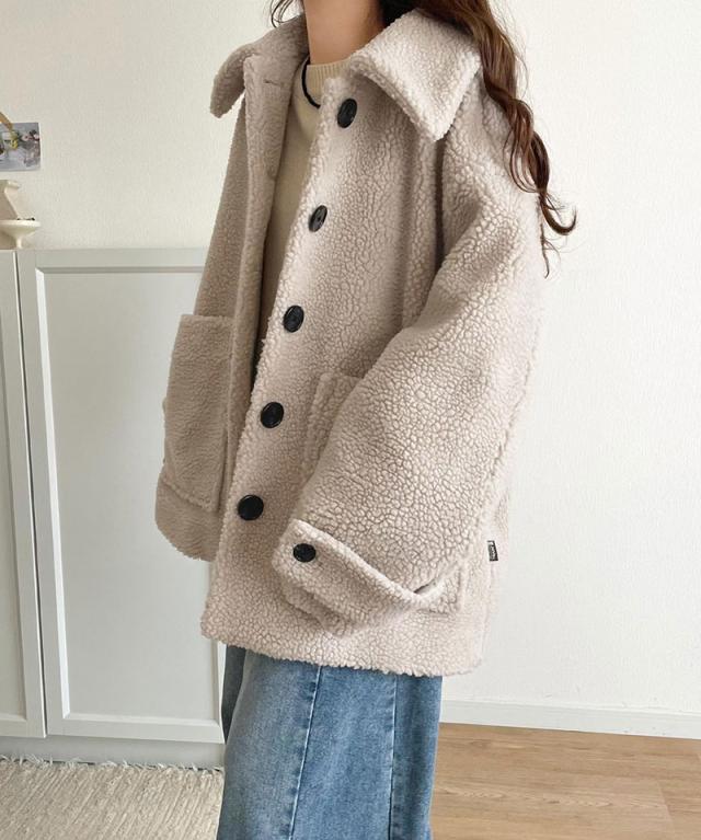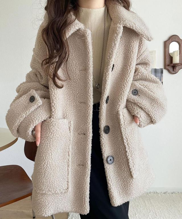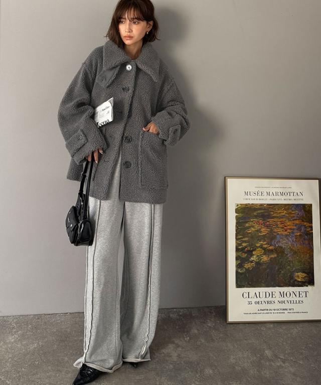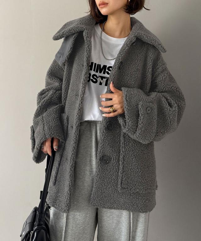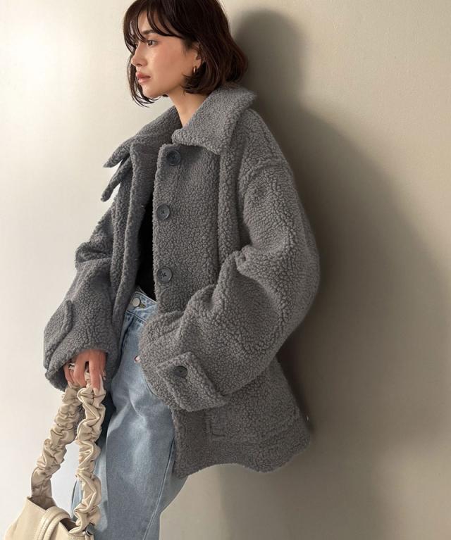 厚みのある大粒ボア素材を使用し、優れた保温性とやさしい肌ざわりを両立しています◎