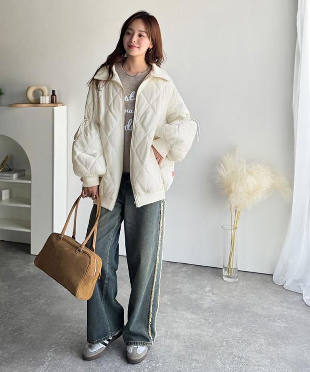 クラシカルエルフ冬新作 java ジャバコラボ ジャケット レディース アウター ダブルキルティング 袖ドロスト 中綿ジャケット カジュアル きれいめ 暖かい かわいい 華奢見え オーバーシルエット 優秀 ゆったりサイジング 大きいサイズ 2025aw jv1265033
