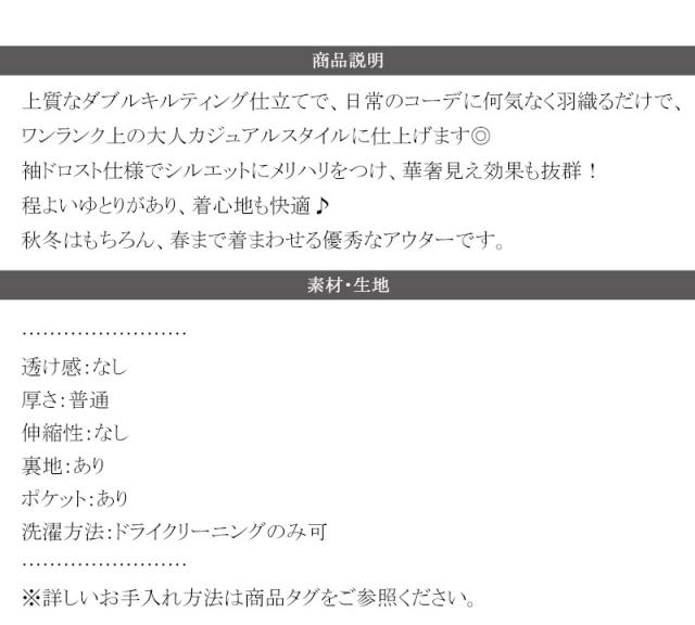 上質なダブルキルティング仕立てで、日常のコーデに何気なく羽織るだけで、