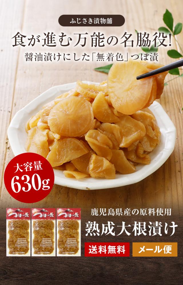 漬物 熟成大根漬け 630g (210g×3袋) つぼ漬 醤油漬け 送料無料 鹿児島県産 九州 国産 つぼ漬け 漬物 漬け物 たくあん 大根 ご飯のお供 お取り寄せ お土産 ふじさき漬物舗 業務用 料理 プレゼント ギフト ポイント消化 [メール便]