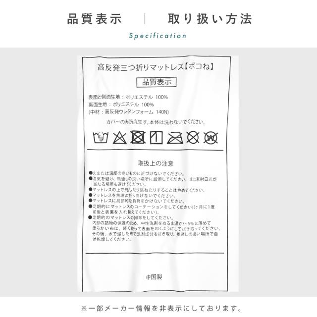 [keyword|点で支える マットレス シングル 除湿シート付きセットも選べる 三つ折り 厚さ約8cm 140ニュートン 硬め 高反発ウレタン 3つ折り 凸凹 体圧分散 プロファイル ポコね 97×195×8cm 敷布団 寝具 軽量 ベッドマット 折りたたみ 敷き布団 腰痛 当社限定 オリジナル 圧縮]