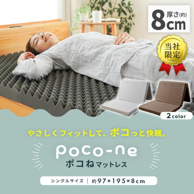 マットレス シングル 三つ折り 厚さ約8cm 140ニュートン 硬め 高反発ウレタン 凸凹 体圧分散 プロファイルウレタン ポコね 97×195×8cm コンパクト 敷布団 寝具 軽量 ベッドマット 折りたたみ 敷き布団 腰痛 当社限定 オリジナル商品