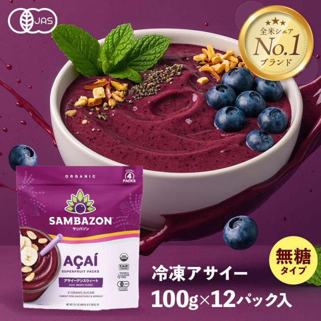 サンバゾン オーガニック 冷凍 アサイー 無糖 12パック入 砂糖不使用 ピューレ 有機JAS フルーツ 果物 スーパーフード 美容 スムージー アサイーボウル SAMBAZON