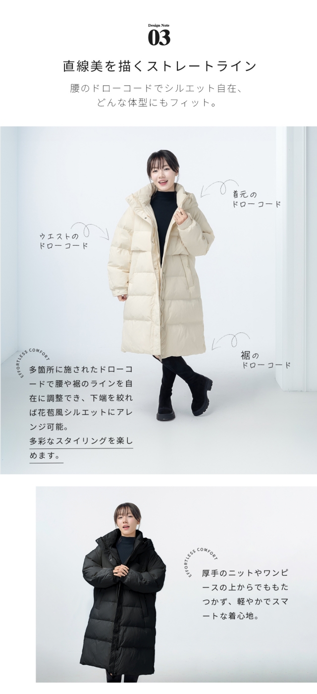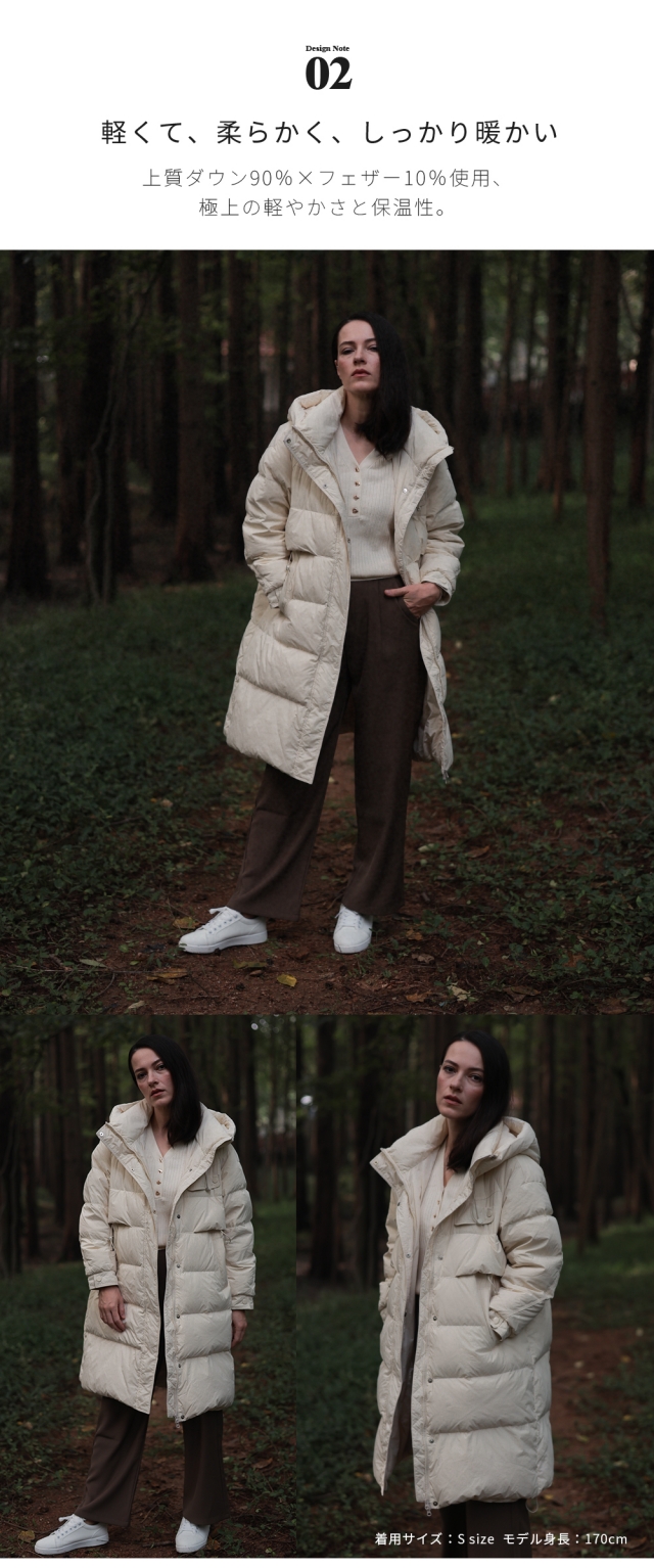 - 軽い上にとても暖かいです。クーポンでお安く買えたし、大満足です。 153センチ痩せ型です。膝位までになりました。袖はちょうどいい。リブが内側なのも良いです。また首周りのファーも暖かいです。上品な色で、...