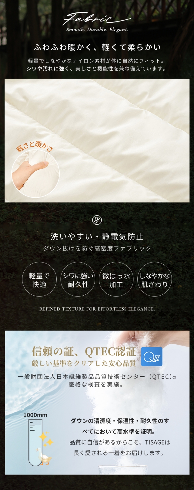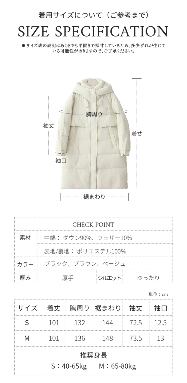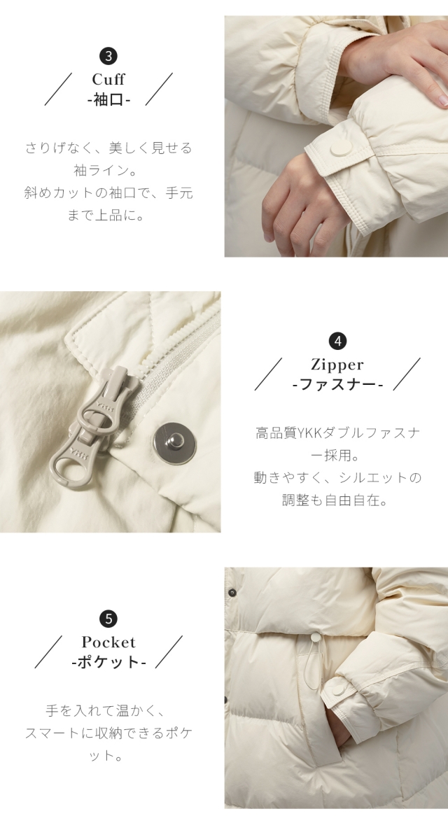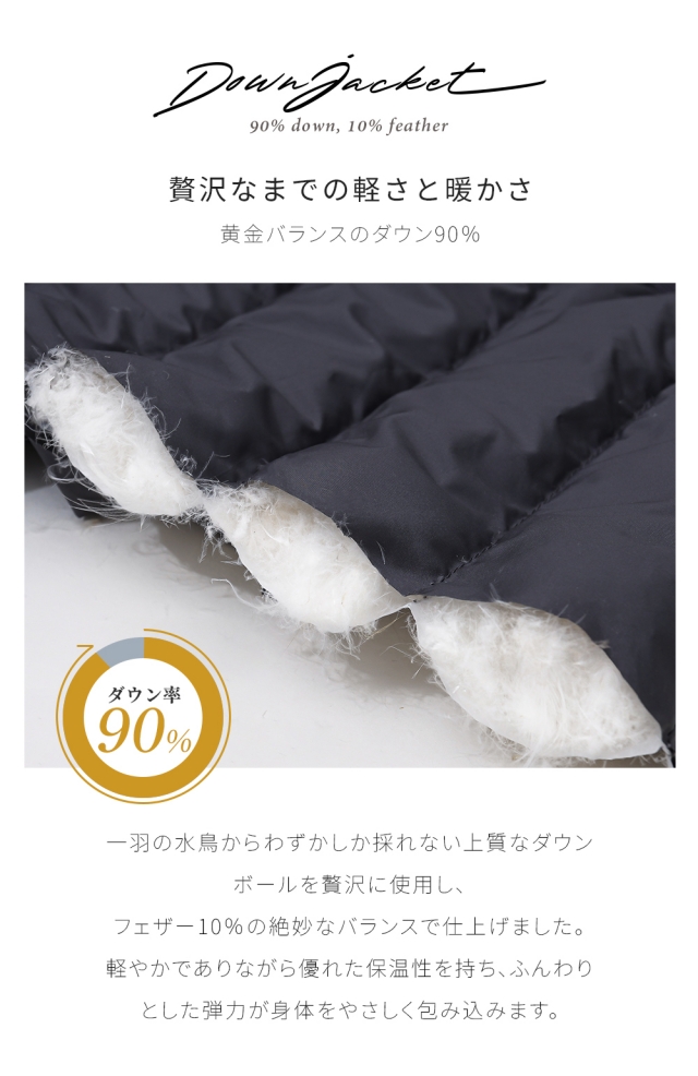素材: 表地:ポリエステル100% 裏地:ポリエステル100% 中綿:ダウン90% フェザー10%