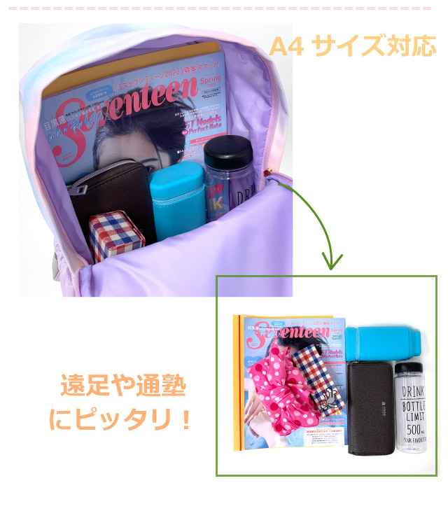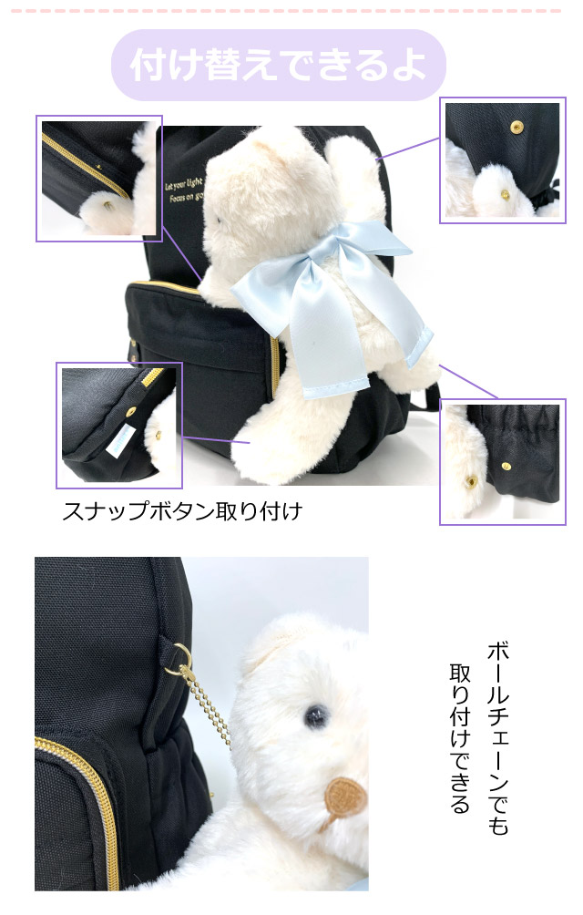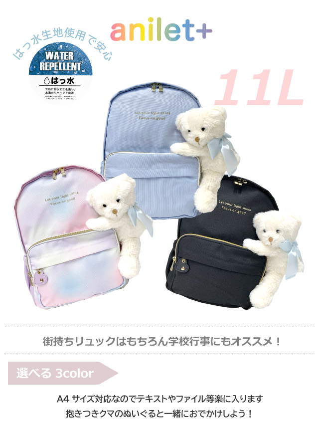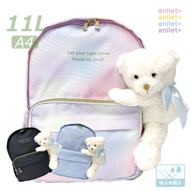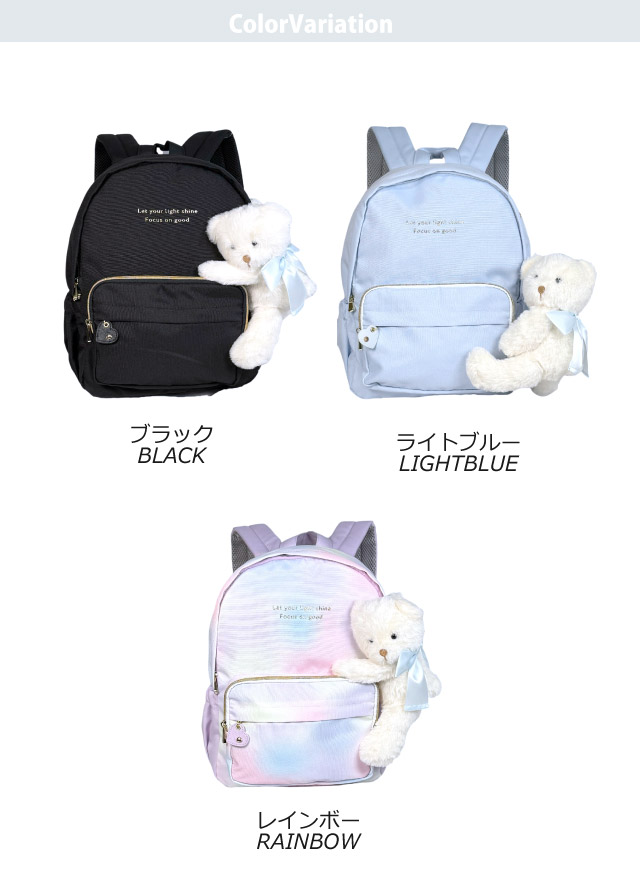 ■イメージ・その他:おしゃれ かわいい お洒落 おすすめ 人気 通販 可愛い ガール girl a4サイズ収納 通学リュック パステルカラー 黒 ブラック グラデーション 水色 ブルー パープル くま クマ テディ ぬいぐるみ付き 撥水 はっ水 ハート 11リットル サブバッグ 誕生日プレゼント クリスマスプレゼント