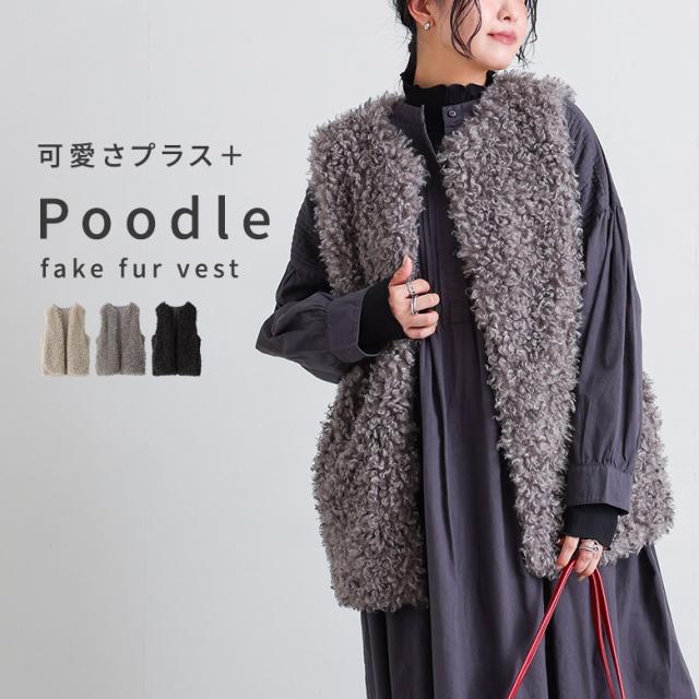 <冬新作>『プードルフェイクファーロングジレ』【メール便不可】【50】[ベスト レディース アウター トップス ジレ フェイクファー ファーベスト プードルファー もこもこ 秋 冬 オシャレウォーカー]