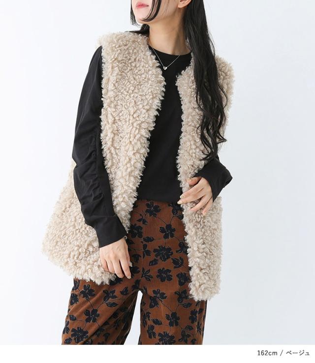ベスト レディース アウター トップス ジレ フェイクファー ファーベスト プードルファー もこもこ 秋 冬 オシャレウォーカー 【TP】 羽織 羽織り ライトアウター ノースリーブ ミディ丈 ミドル丈 無地 ボア ファー エコファー ポケット 防寒 あったか ふわふわ ふわもこ カジュアル レトロ シンプル ナチュラル モード キレカジ 可愛い系 大人女子 大人可愛い お洒落可愛い 大人カジュアル 上品 きれいめ ベーシック ニュアンス ラフ Sサイズ Mサイズ Lサイズ 10代 20代 30代 40代 50代 60代 低身長 高身長 女子会 オフィス 通勤 通学 お買い物 お出掛け 旅行 おしゃれ お洒落 トレンド 流行 osharewalker ベージュ 茶色 モカ ブラック 黒[ID]13oo028[プードルフェイクファーロングジレ]
