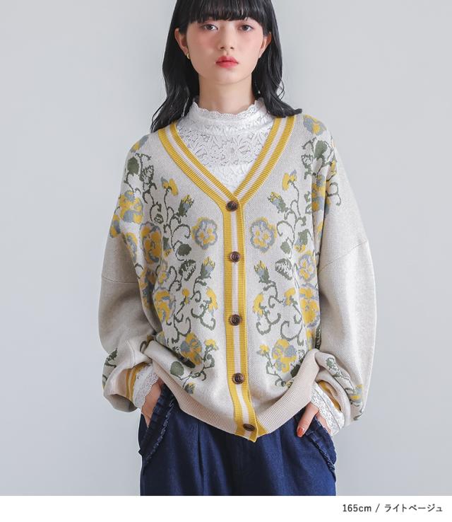 カーディガン 長袖 レディース トップス ニット 羽織 花柄 ジャガード ジャカード コットン混 プレッピー 秋 冬 【TP】 羽織り ライトアウター ニットカーディガン Vネック ミディ丈 ミドル丈 ドロップショルダー ビッグシルエット オーバーサイズ 花 フラワー ボタニカル柄 総柄 配色 綿混 レイヤード 重ね着 おうちで洗える カジュアル クラシカル シンプル キレカジ フェミニン ガーリー 可愛い系 大人女子 大人可愛い お洒落可愛い 大人カジュアル 上品 きれいめ ベーシック ニュアンス ゆったり ゆる 楽ちん お尻が隠れる Sサイズ Mサイズ Lサイズ LLサイズ 3Lサイズ XLサイズ フリーサイズ ぽっちゃり 体型カバー 大きいサイズ プラスサイズ 10代 20代 30代 40代 50代 60代 女子会 お買い物 お出掛け 旅行 おしゃれ お洒落 somari imagination ソマリイマジネーション ナチュラル osharewalker オシャレウォーカー おしゃれうぉーかー ベージュ ライトベージュ グレー 灰色 チャコールグレー チャコール 杢チャコール マルチカラー[ID]14to0nh