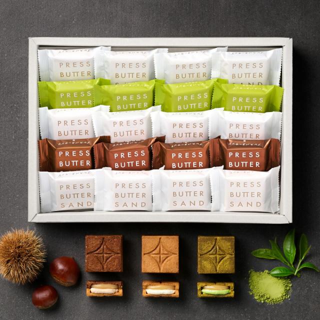 PRESS BUTTER SAND バターサンド 3種詰合せ〈栗・宇治抹茶〉 20個入 / 東京 土産 人気 お菓子 洋菓子 焼き菓子 ギフト プレゼント 詰め合わせ 誕生日 送料無料