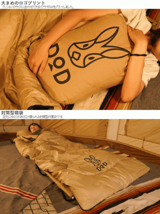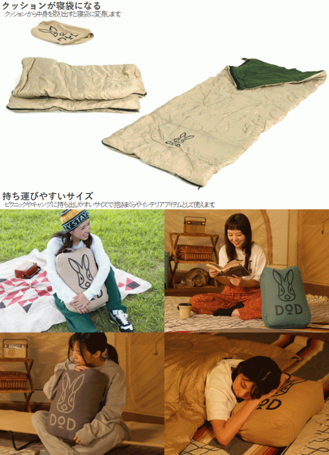 DOD クッション 寝袋 封筒型 ウサクッション シュラフ ウサギロゴ入りクッション 掛け布団 抱きまくら インテリアアイテム ピクニック キャンプ アウトドア ウサクッションシュラフ S1-936-TN