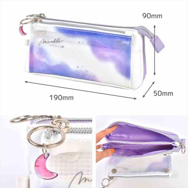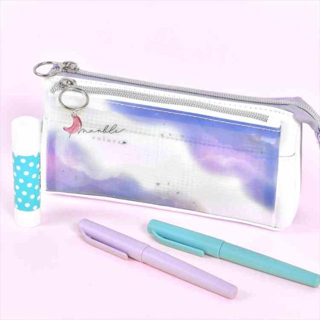 ペンケース 筆箱 小学生 女の子 かわいい おしゃれ ポーチ型 大容量 自立 小学校 高学年 女子 パープル 紫 ラベンダー バイオレット クリア 透明 シンプル ペンポーチ ふでばこ 小物入れ ペン入れ 文房具 文具 ステーショナリー 仕分け 収納 ポケット 多い コンパクト スリム