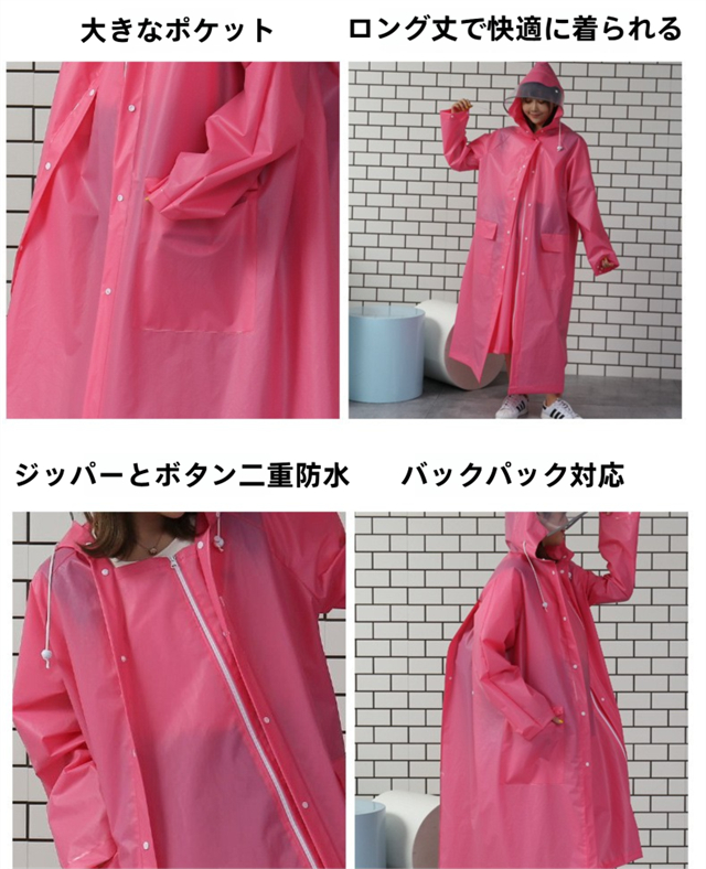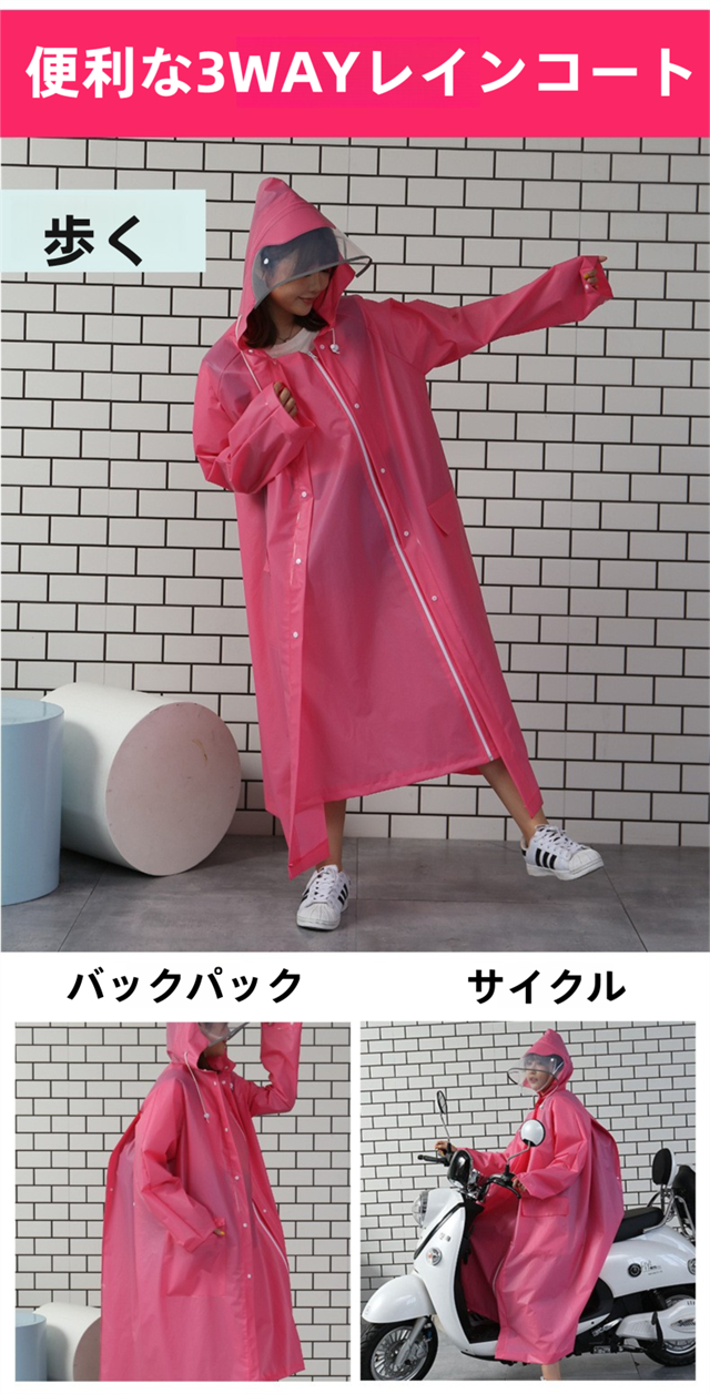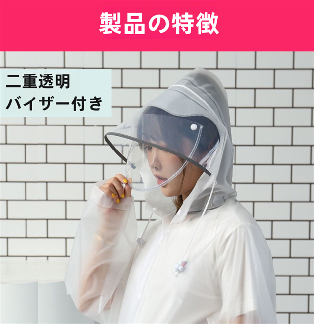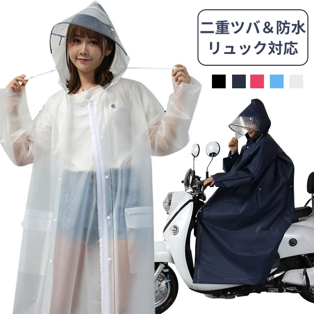 レインコート 大きいサイズ 男女兼用 リュック対応 撥水 ポケット付き 二重ツバ クリア視野 膝が濡れない 自転車 通学 レインウェア バイク 雨具 レインポンチョ ロング 防水 防風 梅雨対策