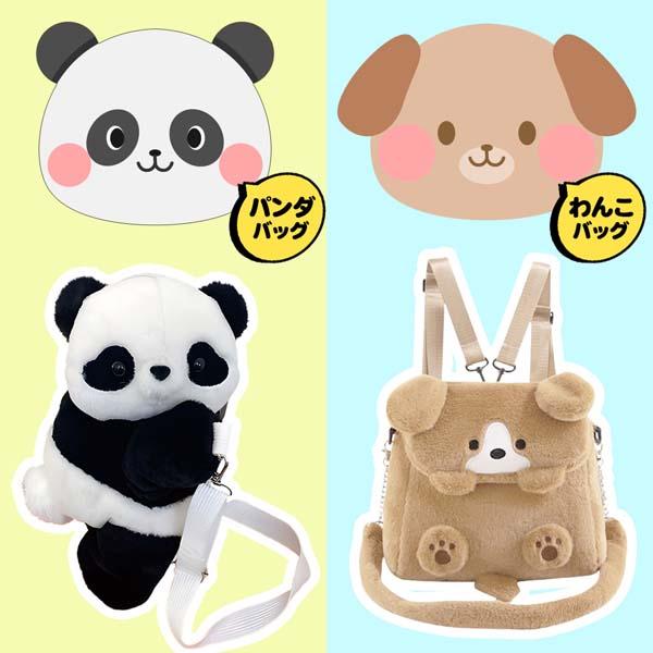| ふわふわ!!犬とパンダの2WAYバッグ。 毎日のお出かけが楽しくなる♪ |