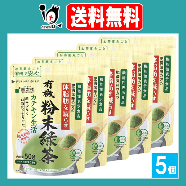 【機能性表示食品】有機粉末緑茶カテキン生活 50g×5個セット【国太楼】肥満気味な方の体脂肪を減らすのを助ける 渋味が少なく口当たりまろやか 緑茶 粉末緑茶 粉茶 カテキン カテキン緑茶 カテキン茶