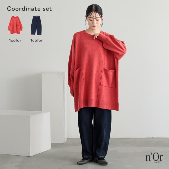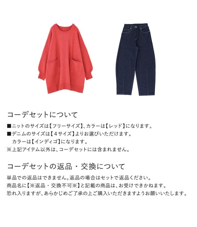【送料無料】『ポケットデザインチュニックニット×カーブシルエットデニムコーデ2点SET』【メール便不可】【40】[2点コーデセット 2025 レディース ニット トップス セーター デニム パンツ ロング丈 ボトムス]