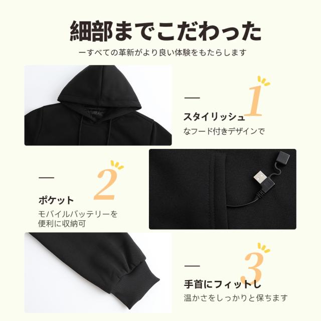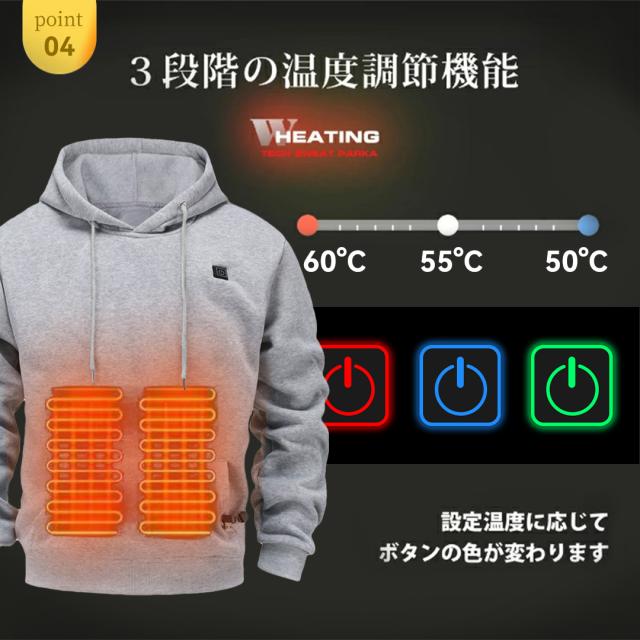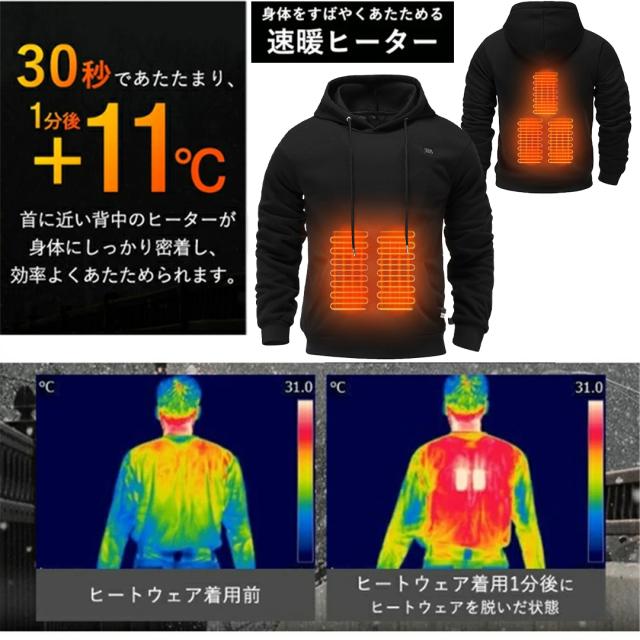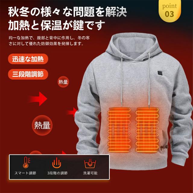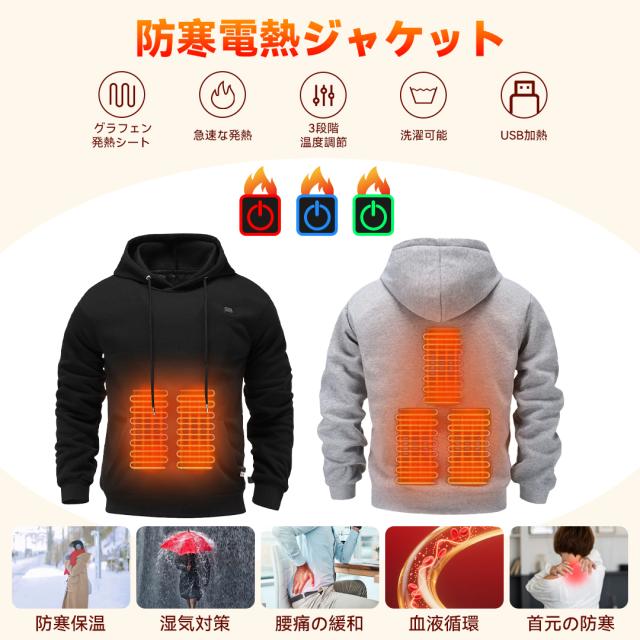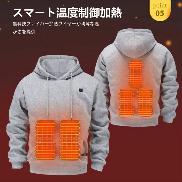 電熱服 加熱服 ヒーター服 電熱ジャケット 加熱 パーカー 電熱ベスト 電熱パーカー 加熱ベスト ヒーターベスト 5つヒーター USB充電式電熱パーカー 3段階調整 冷え症対策 防寒 大雪対策 男女兼用 通勤通学 屋外作業 洗濯可 防災保温