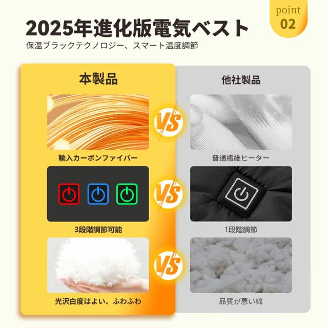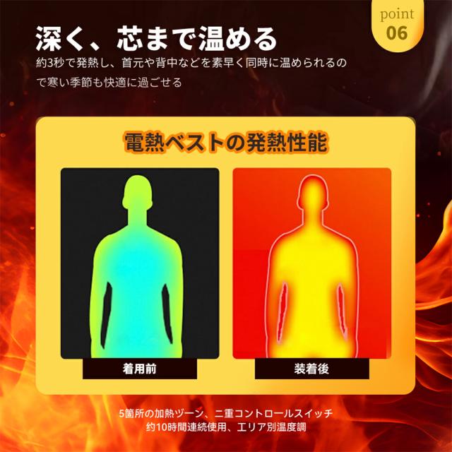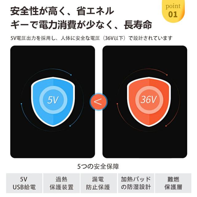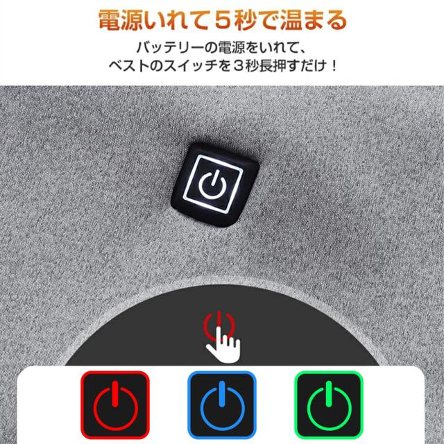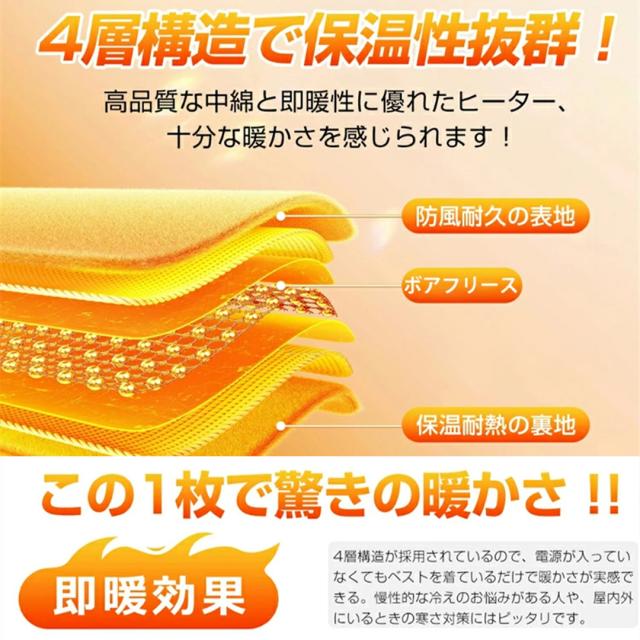 【内蔵電熱炭素繊維】お客様により良い暖かさと心地よさを提供するために、服には炭素繊維加熱素材を採用しており、安定に発熱する特性があり、抜群な伝熱性で保温防寒の効果が向上して寒い季節を快適に乗り切ることができます。 【5V/2A規格・USB加熱・省エネ】