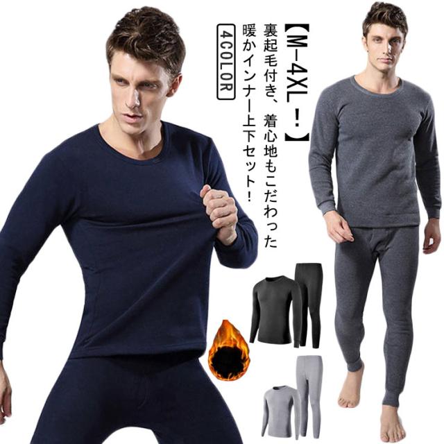 ヒートテック メンズ 大きいサイズ 長袖 防寒 インナー 防寒着 丸首 インナーウェア あったかインナー 大きいサイズ 保温インナー 上下セット 肌着 春 秋 冬 アンダーシャツ M L XL 2XL 3XL 4XL