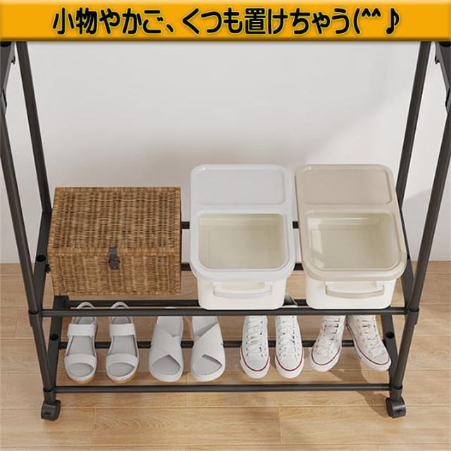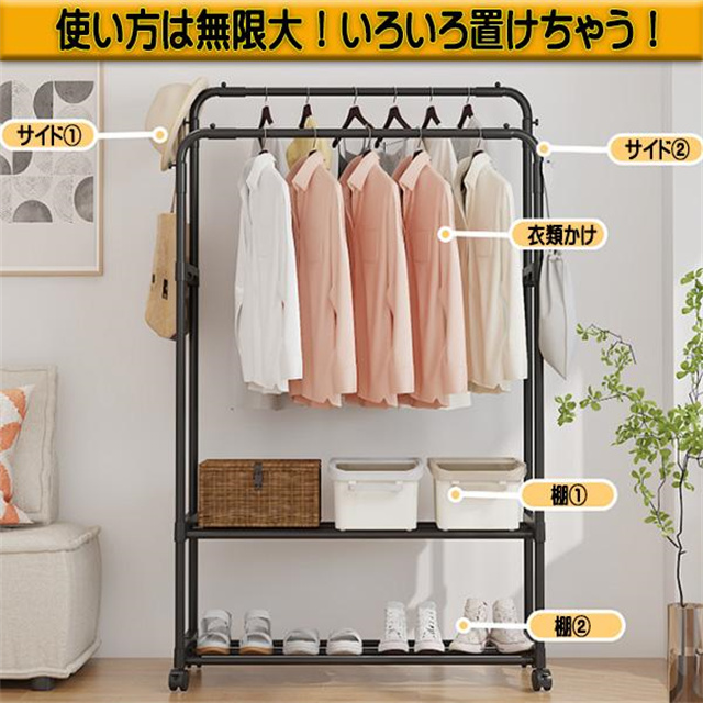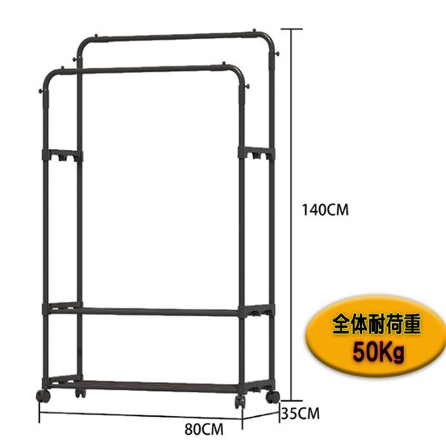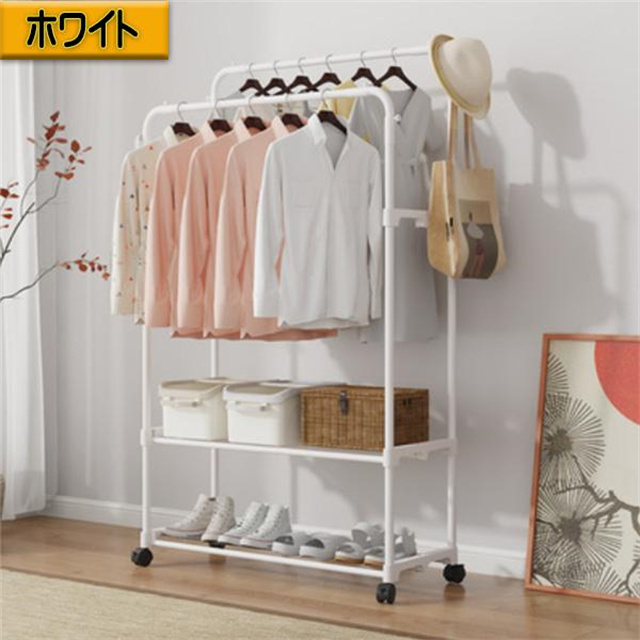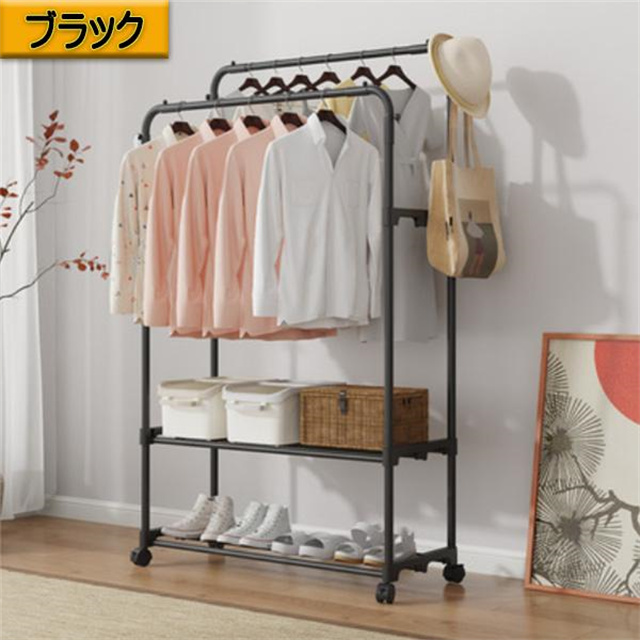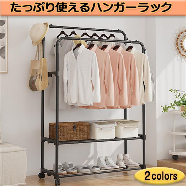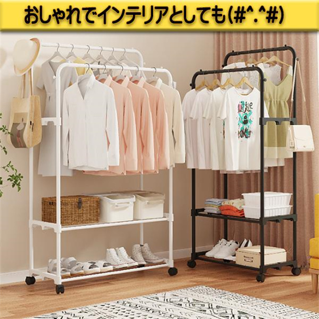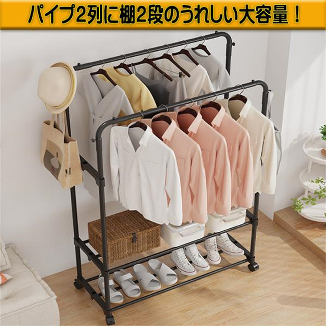 新登場 ハンガーラック キャスター付き 2列 2段 おしゃれ 可動棚 ダブル 頑丈 室内物干しスタンド 洋服ラック 洋服 スリム 衣類収納 送料無料