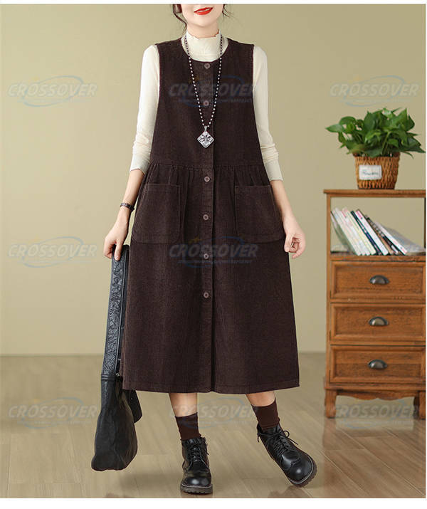 ジャンパースカート ロングワンピース レディース 秋冬 コーデュロイ ワンピース ロング きれいめ ミモレ丈 サロペット 冬 aラインワンピース 大きいサイズ ノースリーブ ゆったり ポケット付き 厚手 カジュアル ルームウェア リラックス