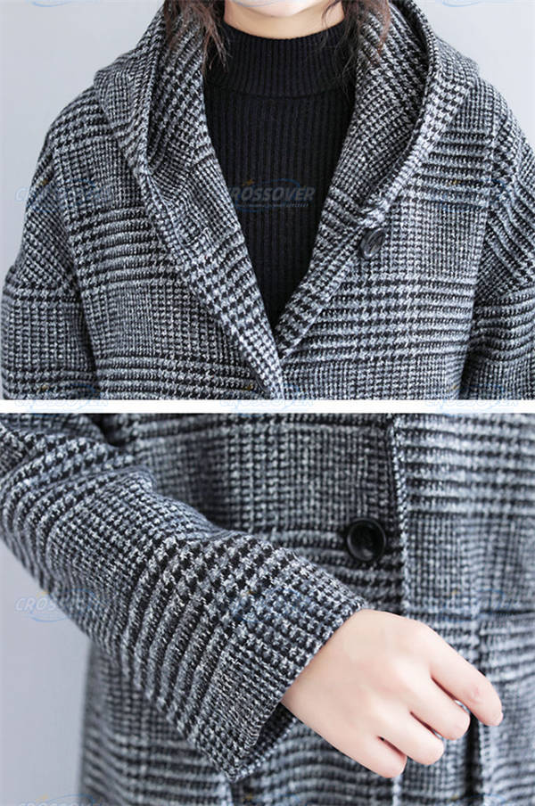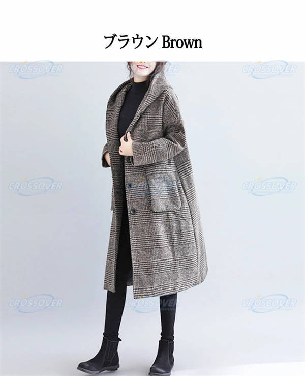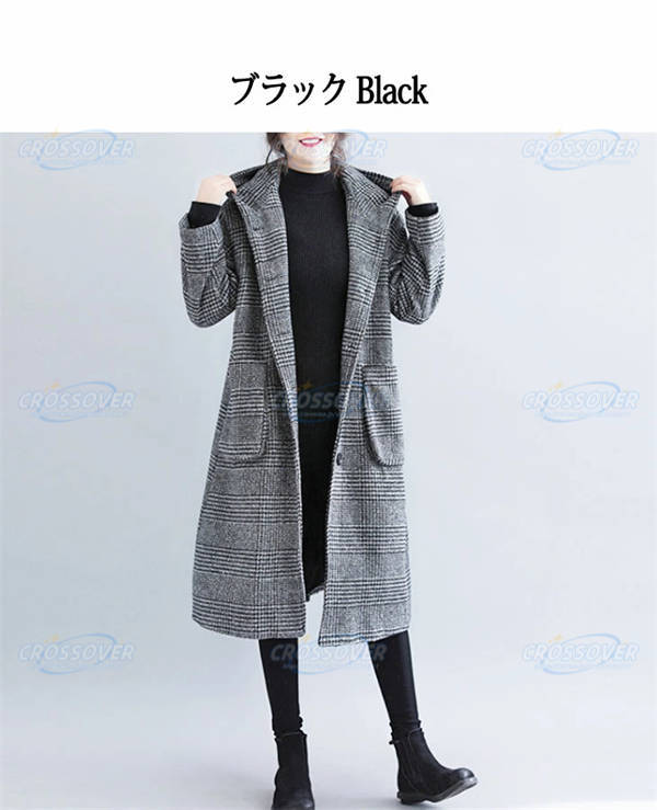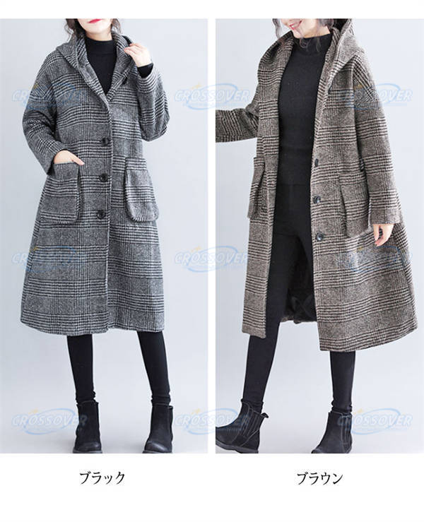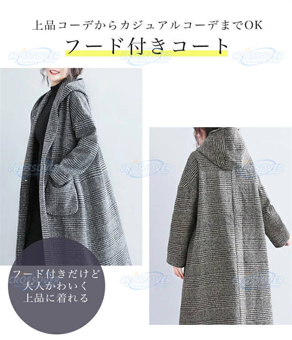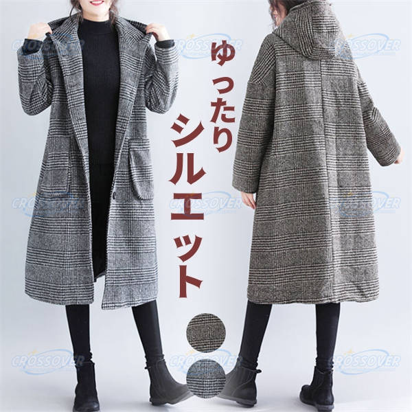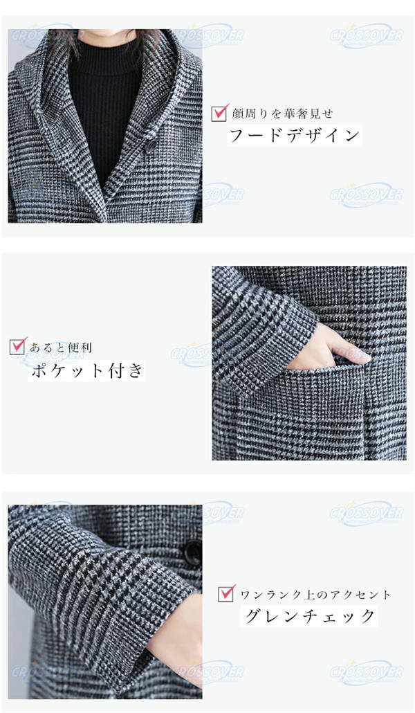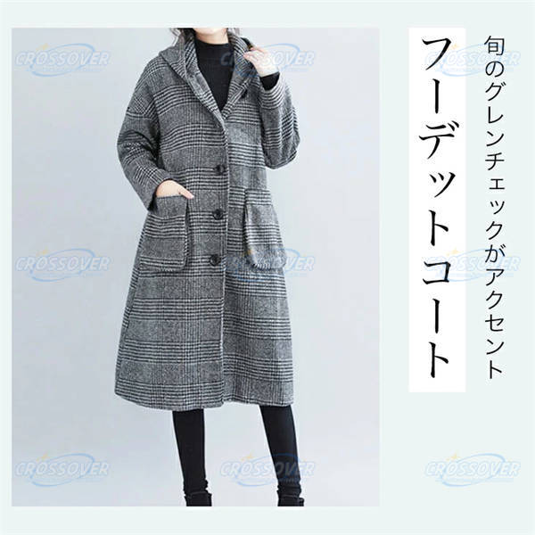 ゆったりシルエット グレンチェック フードコート レディース フーデットコート グレンチェック フード付き コクーンシルエット アウター秋冬コート格子 秋冬 防寒 あったか ミディアム丈