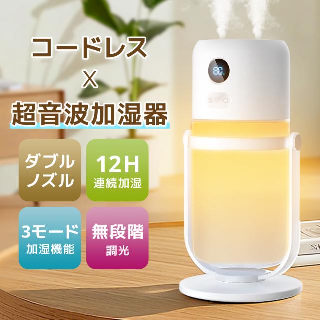 加湿器 小型 卓上 ミニ 超音波 アロマ 除菌 空気清浄機 大容量 400ML USB充電式 コードレス 水溶性アロマ対応 ダブル噴霧 ミスト 連続加湿 マイナスイオン 次亜塩素酸水対応 静音